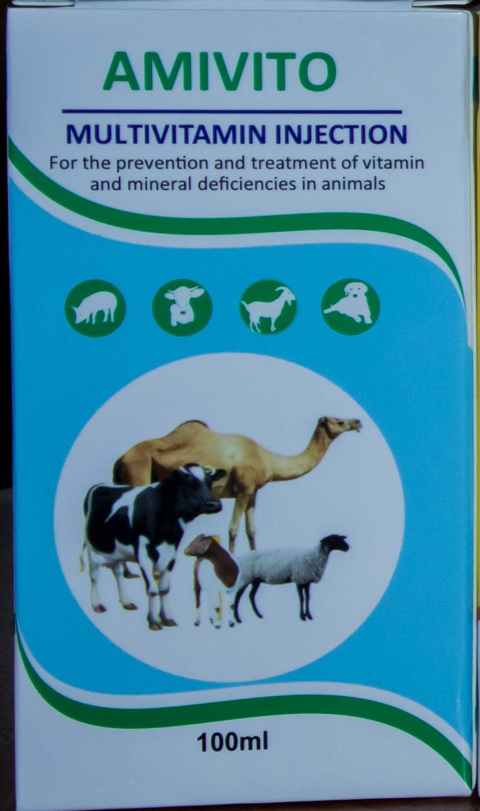 Amivito Injection is a fast-acting vitamin and mineral injectable solution designed to boost vitality, improve metabolic functions, and enhance immunity in livestock and poultry. It is ideal for correcting deficiencies and supporting recovery during periods of stress or illness.